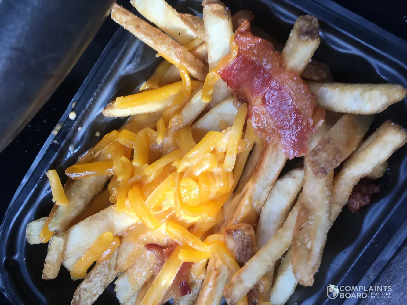 I was craving some baconator fries or should I say my baby was craving some. I order a son of a baconator, baconator fries with extra bacon and a large coke with lite ice. When I opened my fries I had less than a half of piece of bacon and no melted cheese on my fries. My cheese on my sandwich was not even melted (it was cold) barley any bacon. My drink was full of ice, I maybe got less than 10 sips out of it.