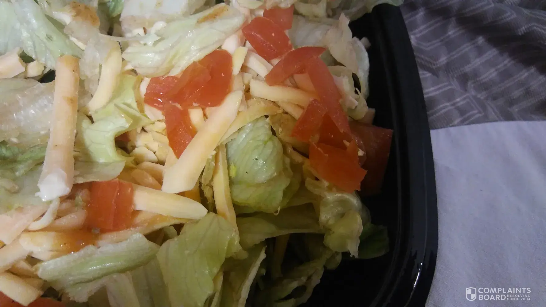 Today I purchased a salad from Wendy's in Las Vegas store #[protected] order number 3299 host Patricia at approximately at 5:51pm I don't visit there often but when I do it's usually ok but today I stopped by to grab food once I got home which is about a ten minute drive from the restaurant I was eating my salad which was not that satisfying in the first place but I paid $7.03 for it so I wasn't going to waste my money I was halfway through the salad and I found a big piece of plastic at the bottom of my salad I immediately spit out the food I was obviously grossed out by it and thought the proper thing to do was submit a complaint.
