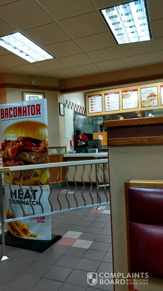 Just ordered 2 Baconator Meals. The burgers were slopped together as if it were assembled by someone throwing it together from opposing sides of the kitchen, bacon was burnt to a crisp, burger had to much salt on it, and there was enough grease on both the burger & fries to clogg any artery. They were out of most drinks so had to settle, and were out of frosties. Will be awhile before I eat here again.