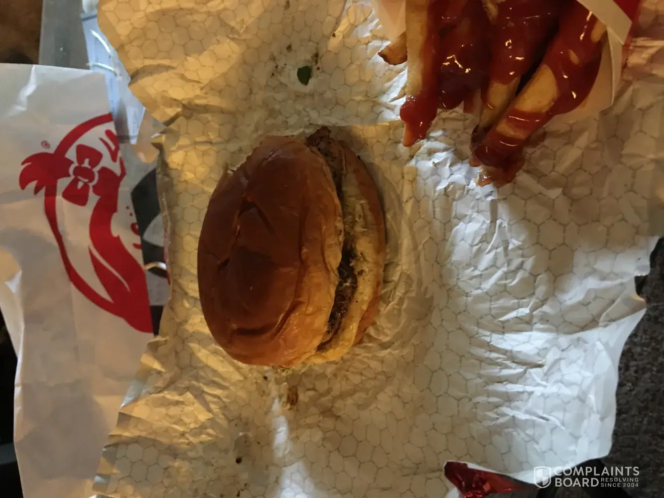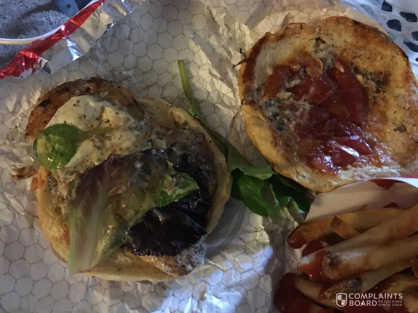 The hamburgers did not have enough mustard. Do you see mention of anything regarding mustard on this receipt?