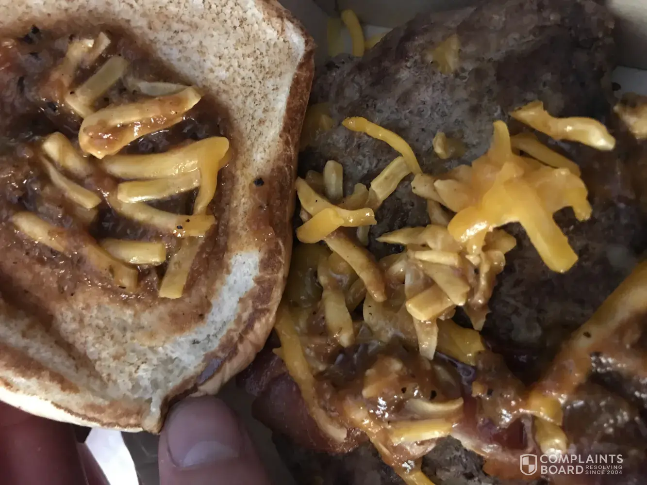 At the drive thru, I ordered 4 of the #3 Combos and asked for NO onion on all of them. When I received my order I checked the burgers. All 4 triple burgers had onion on them, and the burgers and french fries were cold.