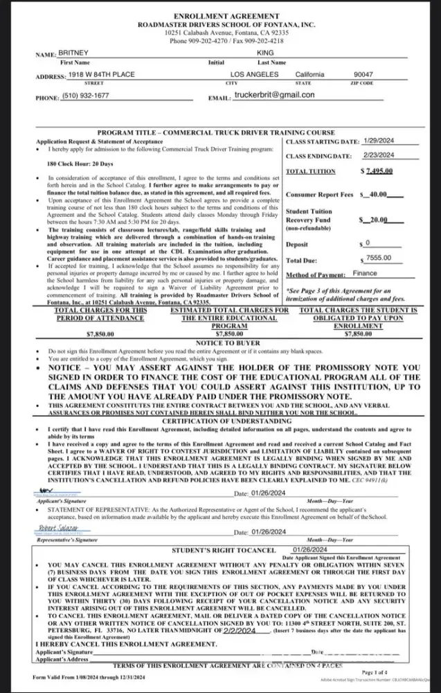 Today I walked in the Roadmaster’s trucking class at 7:30am, Robert was standing in the class and said go to his office. I went to his office, he then walked in his office at 7:31am. He sat down and said that I was tardie, that I came in at 7:31am. I told him that I pulled in the parking lot at 7:28am due to it being a car accident on the fwy and I made it to class at 7:30am. He said No, it was 7:30am and 30 seconds. I said okay then write that time on the tardie slip. He said no I’m putting 7:31 and since you’re refusing to sign the slip I’m kicking you out of the school. I asked him did I miss any classroom instruction? He said no. I asked him why is he making miss 10 hours of instruction over supposedly, according to him, being 30 seconds late. He said Now I’m asking you to leave the school and I’m going to call security. I left. I was faced with discrimination and harassment at this school and I would like to reach out to someone to resolve this issue.