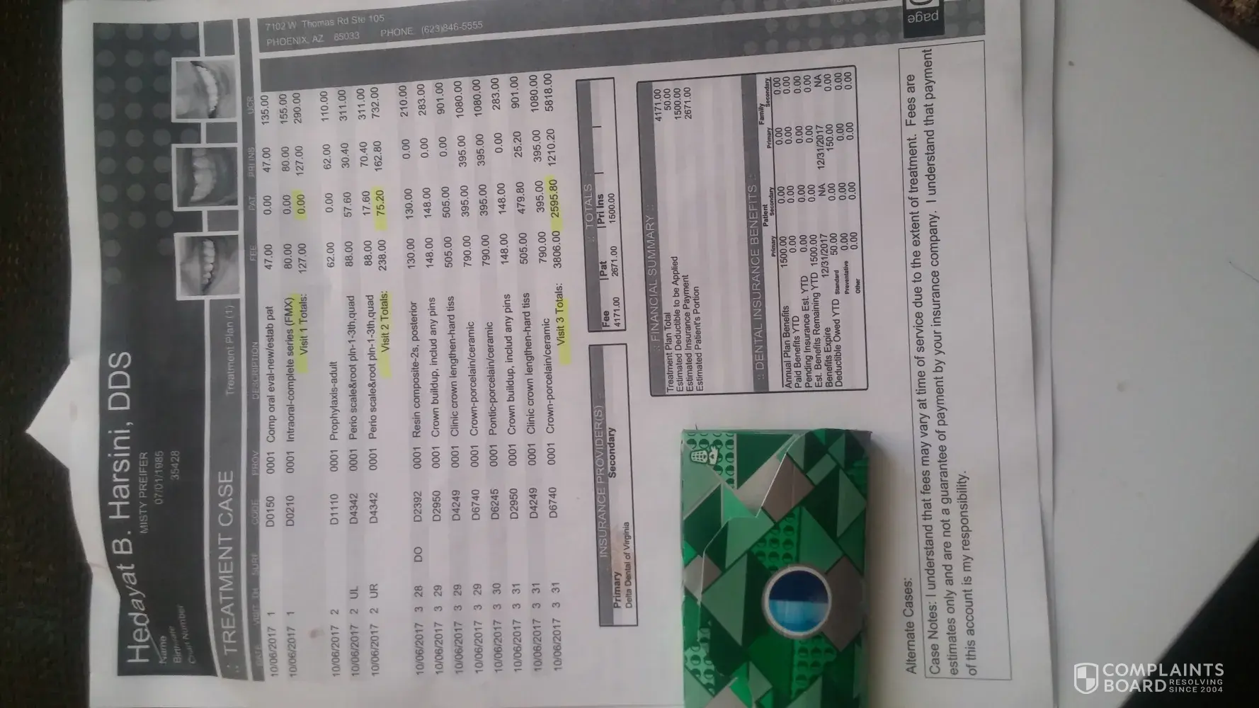 I am complaining about the dentist