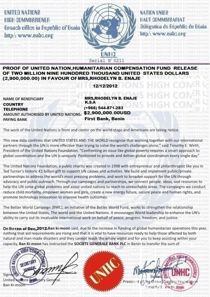 Proof of united nations compensation. Jpg