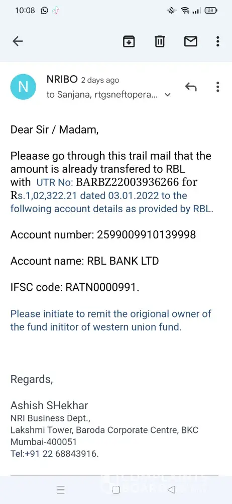 I have already forwarded the email from the bank to the western union as well.