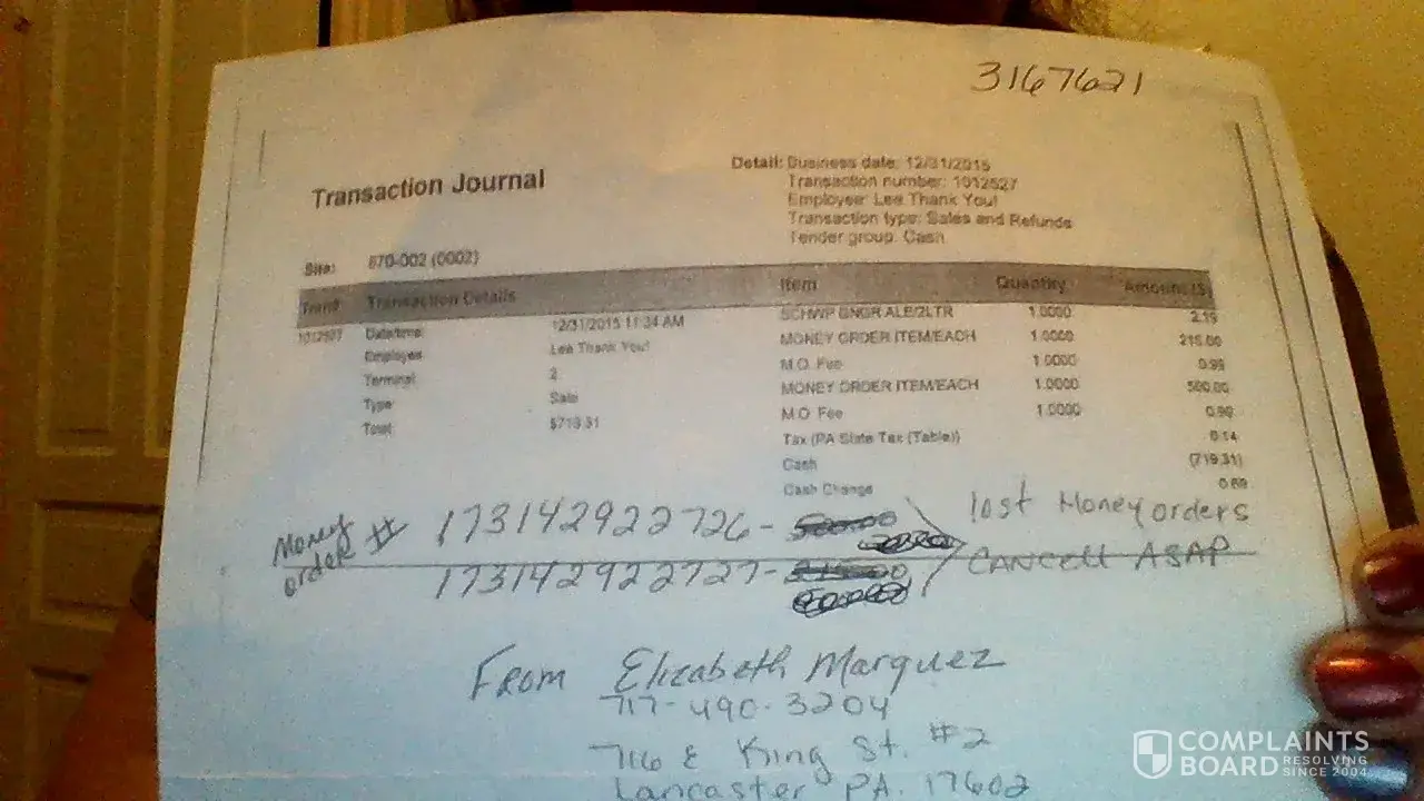 my name is Elizabeth Marquez I lost my money order and proof of purchase it will be a year 12/31/2016, I have send them everything I have in my possession, I have been complying with western union. but not enough proof also the money orders in question have not been cashed.