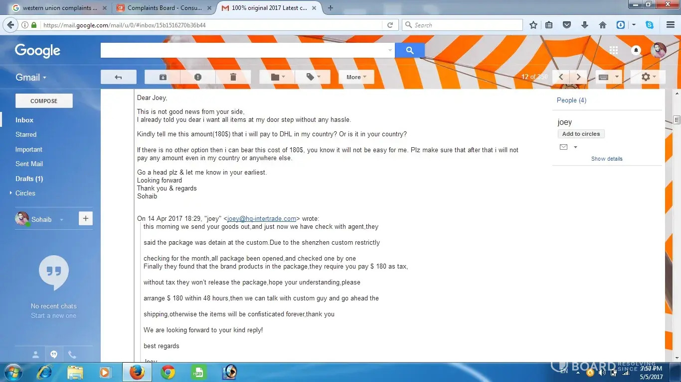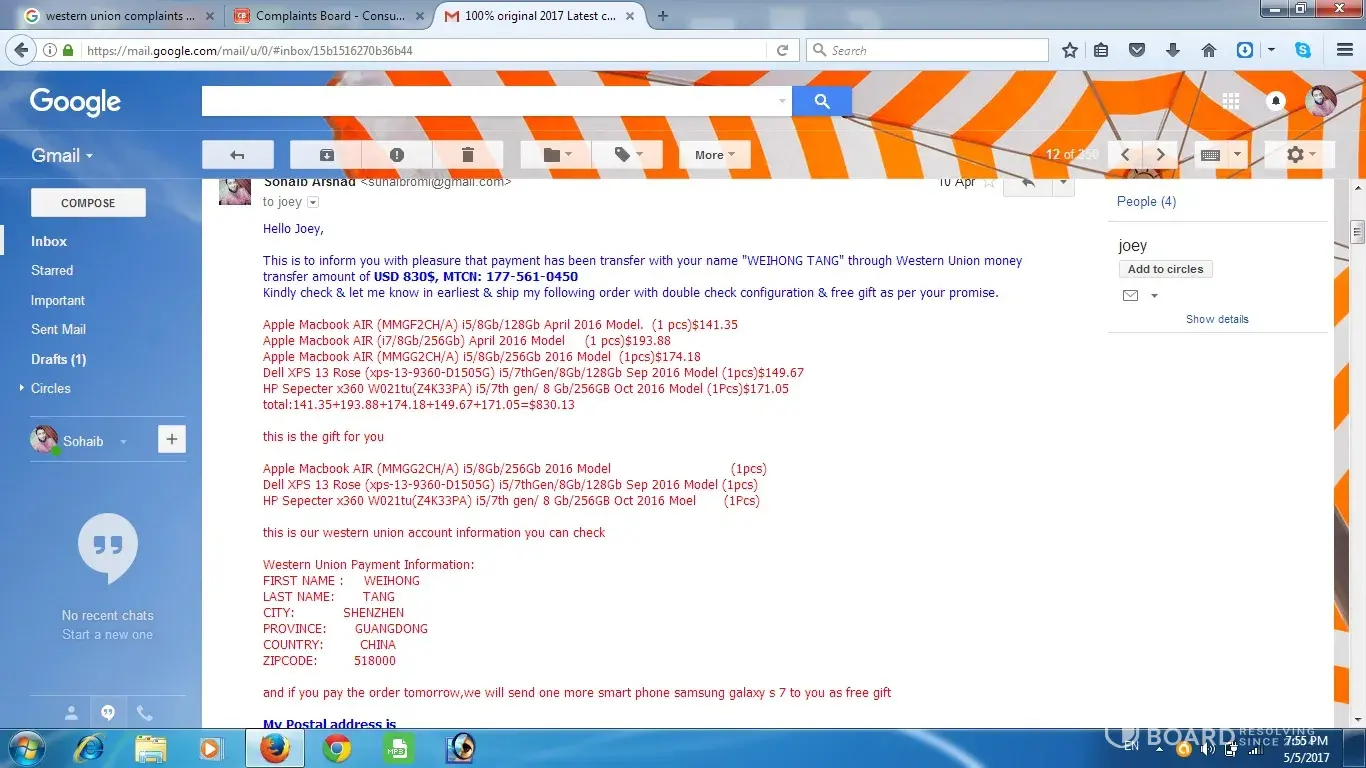 I placed order through email to supplier to china, payment sent with the following details on 10th april usd 830$