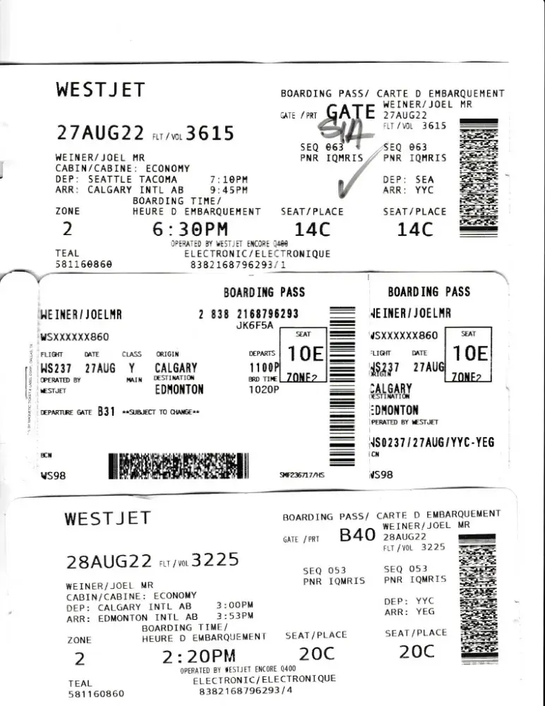 On August 27, 2022 we flew from Sacramento Ca to Seattle Wa connecting to Calgary and then Edmonton.
