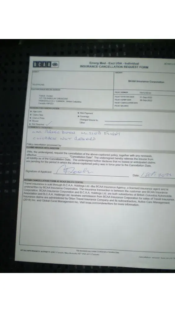 On 30th of August Car broke down on the way to Vancouver Int. Airport so missed our flight through no fault of ours. Could not leave vehicle on the side of the highway as it would be ticketed co waited 4 hrs for a tow truck and had car towed to the dealership in Richmond
