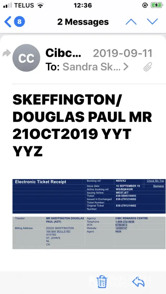 The end result is that I had to pay for new tickets at a cost of $2, 271.72 to get us to Calgary that day. I bought these new tickets from Air Canada as I no longer wanted to deal with Westjet.