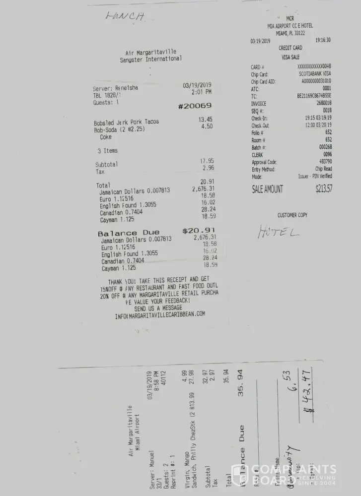 On March 19th we headed back to the airport for out flight to Miami. After paying the additional baggage fees, we arrived in Miami. Here again we had to pay out of pocket for more unnecessary expenses, we had to find food, we were starving at that point and then worry about accommodation. I have attached the receipts for both food and hotel for witch we were out of pocket . The next morning we were able to have breakfast included in the hotel cost. We were given a "premium" upgrade as Westjet put it. However they ended up scattering us as we weren't seated together, even though we mentioned that we wanted at least two seats together as my 73 year old sister has a fear of flying and was told we would have 2 seats together . Once arriving in Toronto we had to take a taxi to get home, as our son could not accommodate us again due to his work schedule.