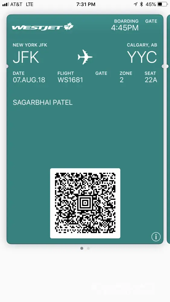 Our flight number was WS4 traveling from London Gatwick Apt to Toronto Lester B Pearson airport on August 6, 2018.
