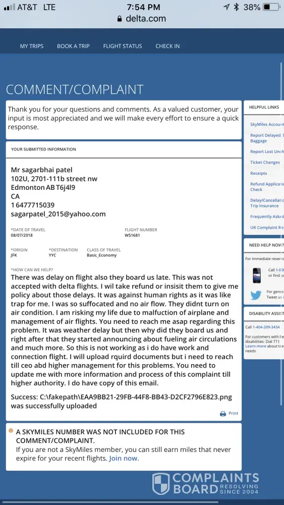 There was delay on flight also they board us late. This was not accepted with delta flights. I wil take refund or insisit them to give me policy about those delays. It was against human rights as it was like trap for me. I was so suffocated and no air flow. They didnt turn on air condition. I am risking my life due to malfuction of airplane and management of air flights. You need to reach me asap regarding this problem. It was weather delay but then why did they board us and right after that they started announcing about fueling air circulations and much more. So this is not working as i do have work and connection flight. I will upload rquird documents but i need to reach till ceo abd higher management for this problems. You need to update me with more information and process of this complaint till higher authority. I do have copy of this email.