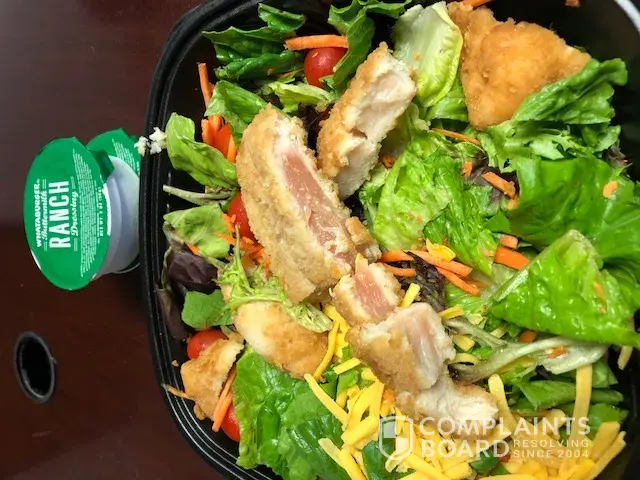 On 9/30/18 around 4pm or 5pm I ordered two Garden Salads with Breaded Chicken along with other items. My husband and I planned on saving our salads to eat for lunch the next day at work. When I was about to eat the chicken it was uncooked. The meat in the middle was clearly not cooked well enough. I called my husband to ask if his salad was the same and he reported his chicken was uncooked as well. I had to throw the whole salad away due to my food being contaminated with uncooked chicken. I am requested a refund of my money. I contacted the Whataburger location I bought it from and the manager offered me another salad but I don't want another salad just because I was already grossed out by the one I bought. I just wanted my money back. I did not have the receipt since I had bought the salad the day before I was going to actually eat my salad. The salad was already cut into pieces when I opened it, so clearly who ever cut the chicken at Whataburger had to have seen that the chicken was not fully cooked. The Whataburger location I had gotten the salad from was: