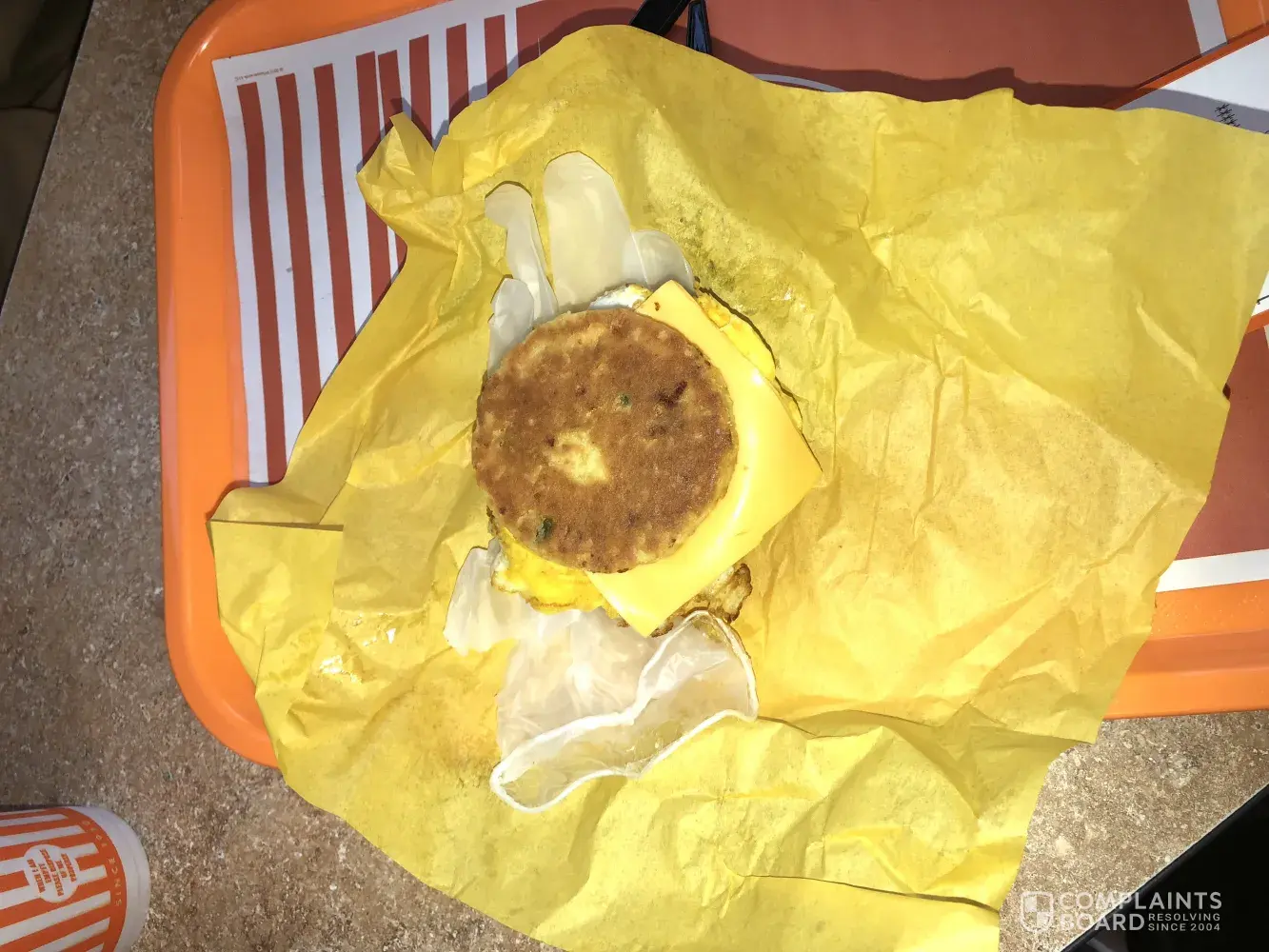 I ordered a Honey Butter Chicken Biscuit with a jalepeno cheddar biscuit. Before i even had the chance to get my drink and choose a table to sit at my food was already out and my first thought was wow that was really fast whataburger is getting better... I spoke too soon because i then got to my table and proceeded to unwrap what i thought was going to be my Honey Butter Chicken Bisquit and i soon found out it was not even close. I started to unwrap the wrappers and i saw it wasn't what i ordered first and then as i continued to unwrap it i found a used clear glove under the bisquit... i was furious and disgusted so i carried it back up to the counter and nothing was done besides i got a new Honey Butter Chicken Biscuit. I don't even think the manager was informed about the incident...