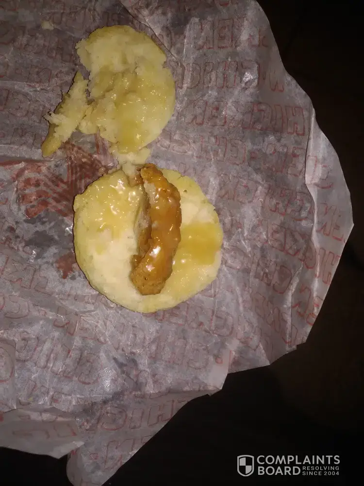 More like honey butter chicken nugget biscuit... Dissatisfied left hungrier than when I ordered.. Lady answered the phone and informed me that they wouldn't replace it cause all the chicken in the store was small and would be the same thing... Really... What ever happened to good coustomer service? How does this location stay open if coustomer is never taken care of?