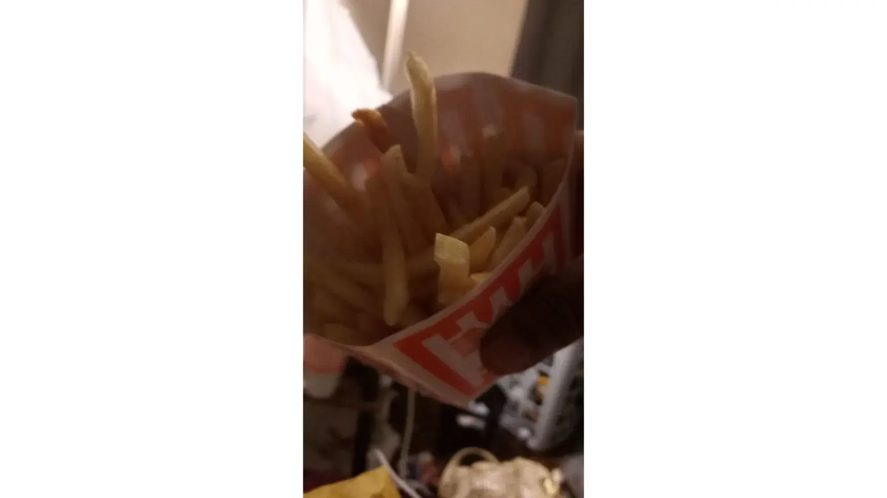 08/21/2022 time 4 ;18 pm we went to what a burger in drive thru ! we got our order hubby gets his frys out i looked and said why they look like yesterday frys so i took them back in manager made us fresh frys while i was waiting a guy asked the girl why did you serve those frys some one spit on them ? i was shocked he said that i asked another guy if he was joking he said he didnt know i left we got home sat down to eat our burgers when i told my husband my burger smelled funny he checked he and said his did too he said the buns are old i was like we aint eating these we thru them away there went our dinner to the trash! im so mad we spent 27.14 on food that went to the garbage i dnt want you to replace my food im done with whataburger !