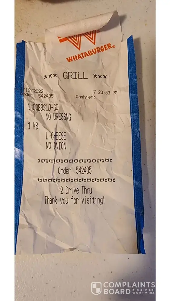 Ordered 1 cobb salad and 1 whataburger