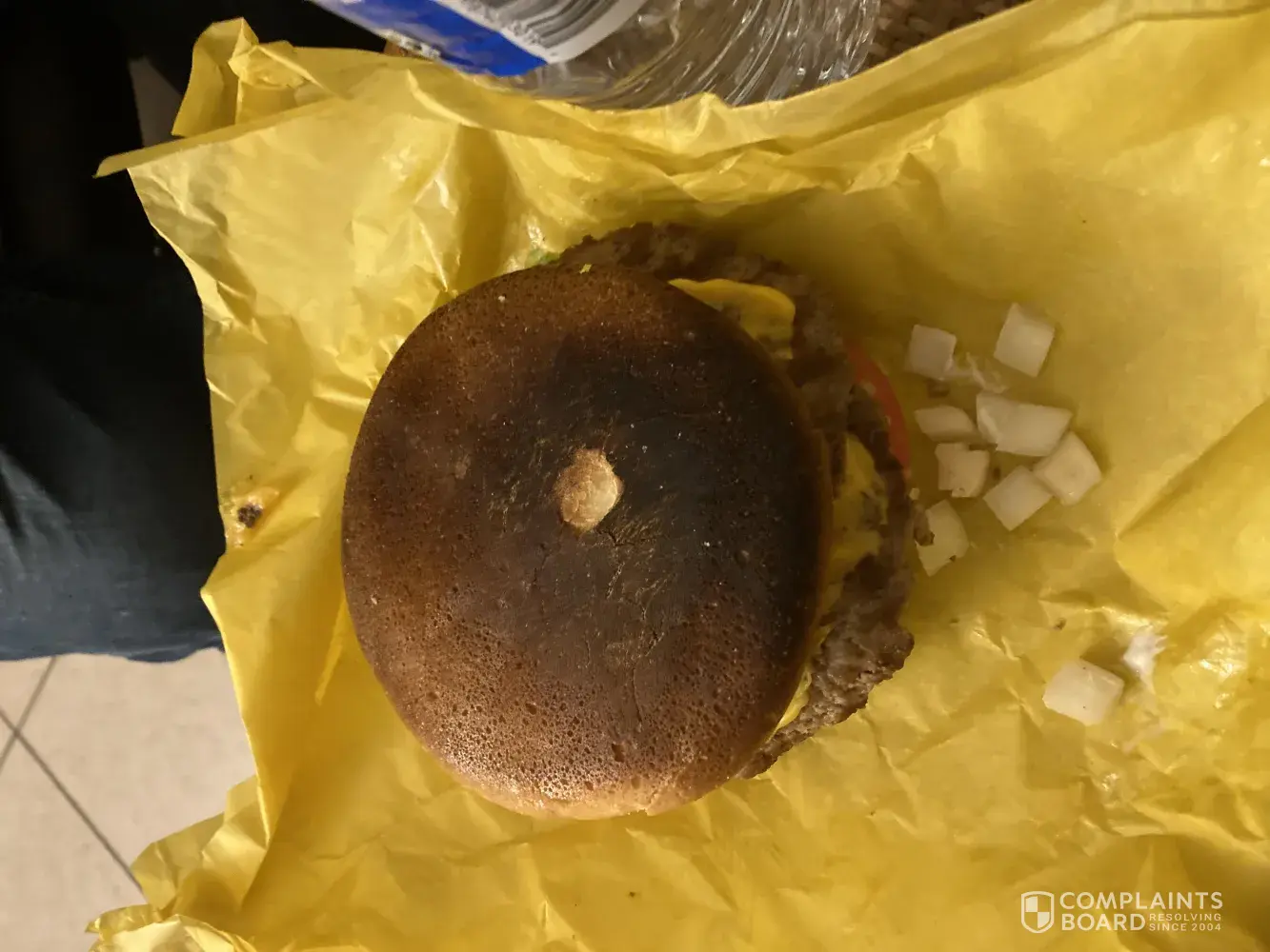 Double cheeseburger bun burnt badly and someone thought it was ok to give to a customer