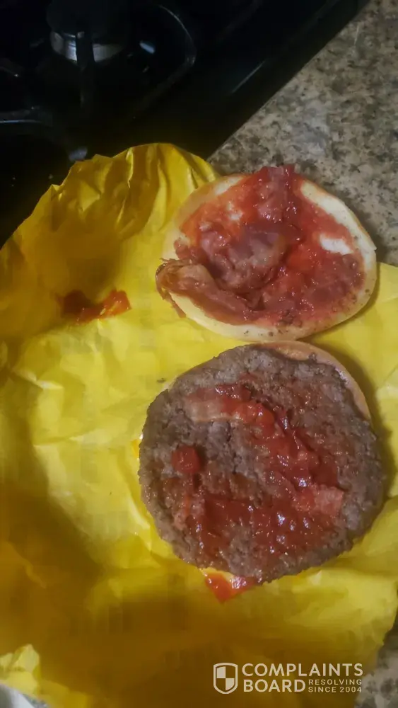 #5 Bacon & Cheese WB ML, No Tomato, Grilled Onion, Extra Mustard, LG Onion Rings & MD Sweet Tea Cashier David B 10:32:12 PM Burger was wrong. Talked to manger Mark 11:35 pm. He knew my burger was for a counter order. Manager refused to offer any solution. He said I could wait 2 hrs to go back bc vents & building