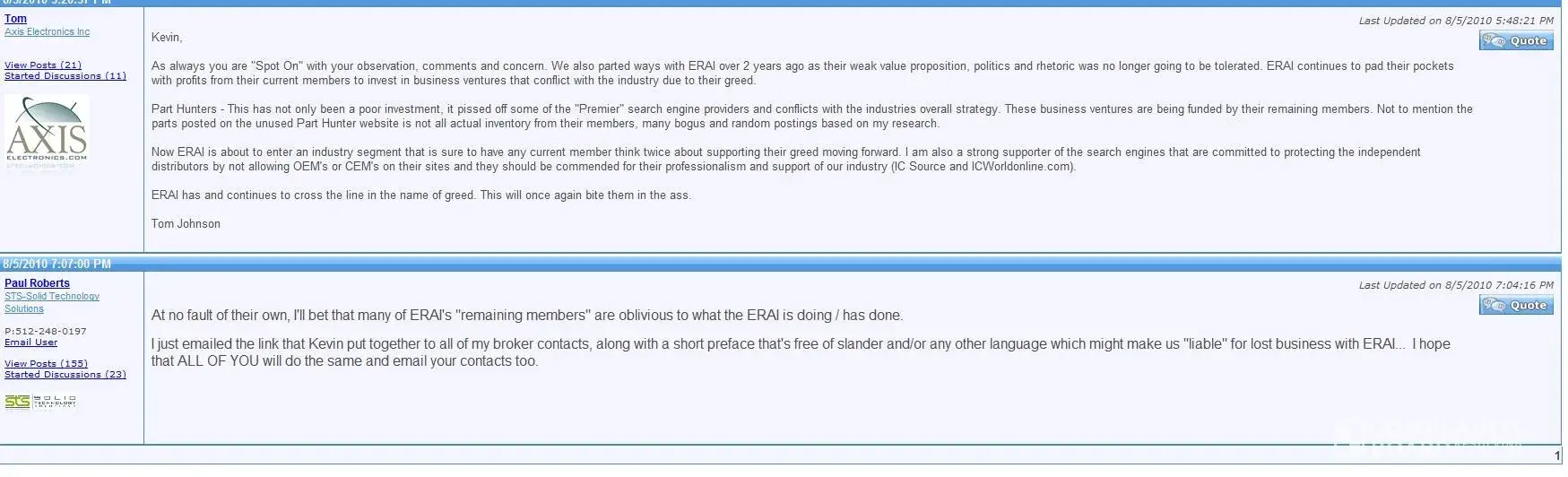Where are these parts gone, Majority of fake parts were sold to other American brokers, few who bought and sold fake parts along with Visiontech are affiliated to ERAI.