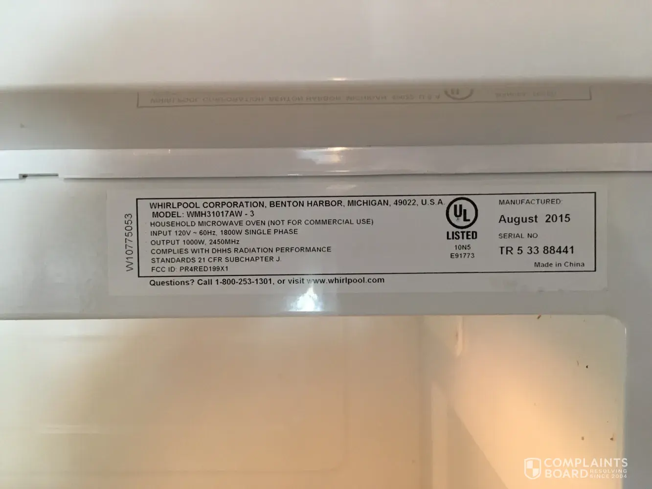 Whirlpool has left an official reply on this complaint.