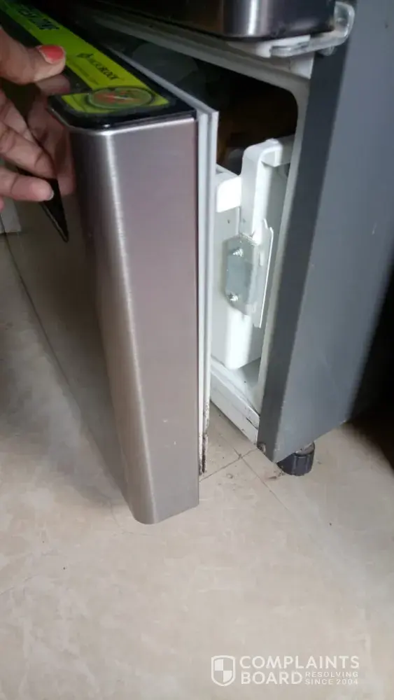 I have compalinted 4 weeks back with your authorized service centre at Cochin, regarding the bottom door of my fridge, which got seperated from the fridge . The lid of the bottom of rhe fridge has got completely removed from the machine.