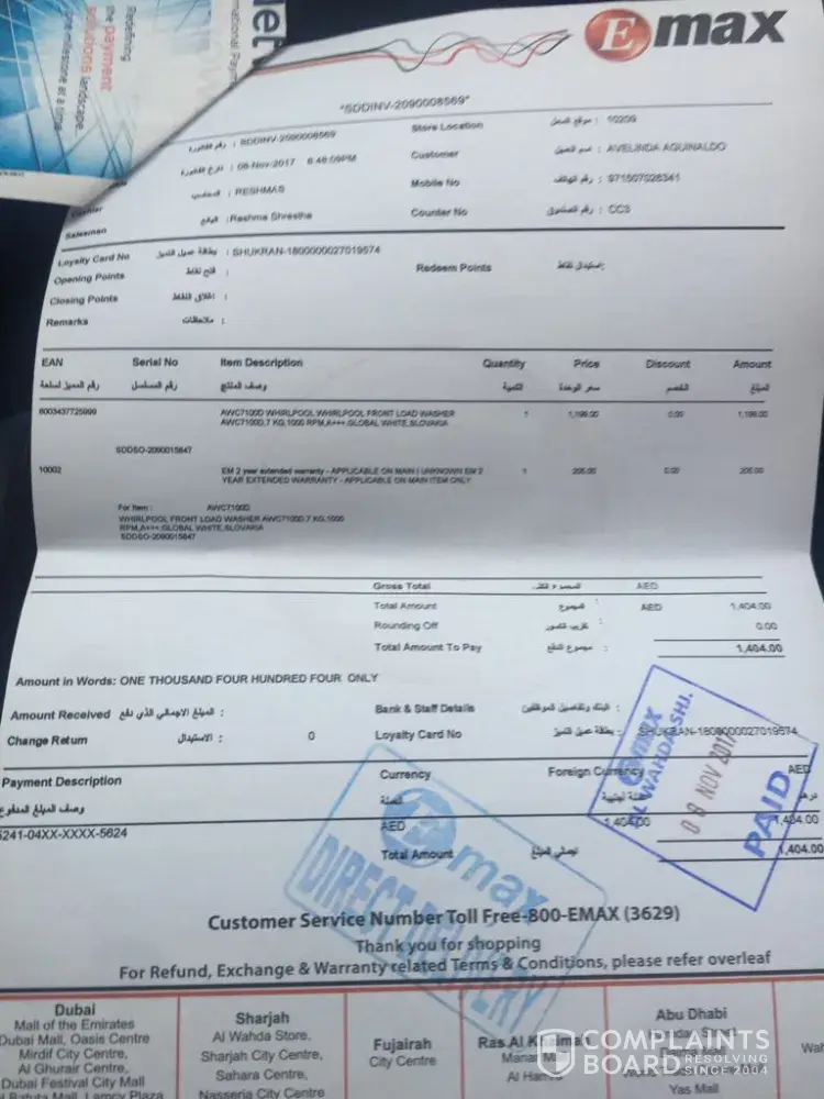 Please note that I purchased a washing machine on 06 Nov. 2017 on the first month we already observe that the washing machine has something wrong because I'm using the same brand whirlpool and on the 3rd year suddenly not starting so I decided to buy the same brand because I am fully satisfied of my previous washing machine and for the reason that the warranty is not there already.