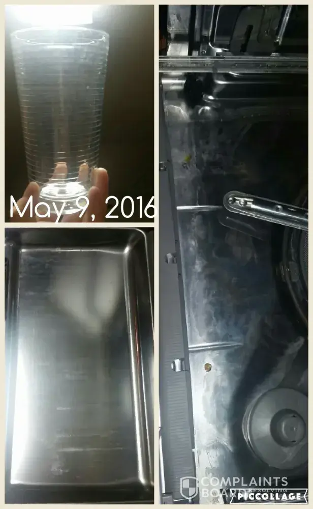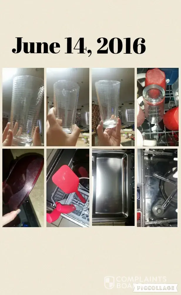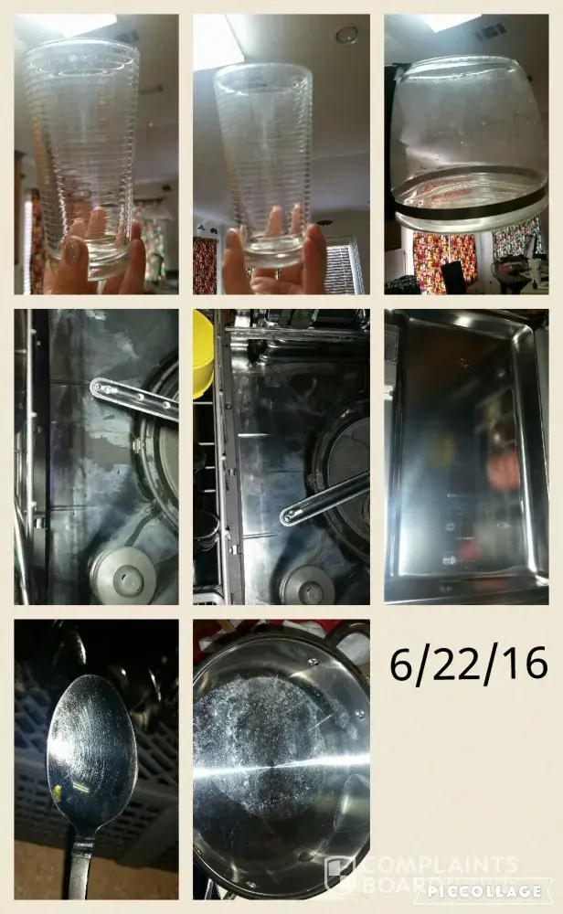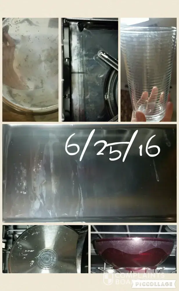 In May, 2016 I called in and requested a different service provider as my dishes were still dirty, but now error code F6E9 was on my Range too. On 5/31/16 Appliance Rescue Service came. I told him what the Guinco technician had said and done and the products he said I needed to use. So now this technician tested my hot water heater temperature and we adjusted it to 130 degrees as he didn't think the water was hot enough to dissolve all the soap which is where the residue was coming from. He also said Affresh was a waste of money and to get Dishwasher Magic. Of course, he had some and sold it to me for $6.95. He did concur that I needed to use a Rinse Aid and that I needed to prime the water before running the dishwasher. He also ordered a replacement motherboard for my range. He finished on 6/10/16. Photos were taken June 14, 22 and 25 and all show continued dirty dishes.