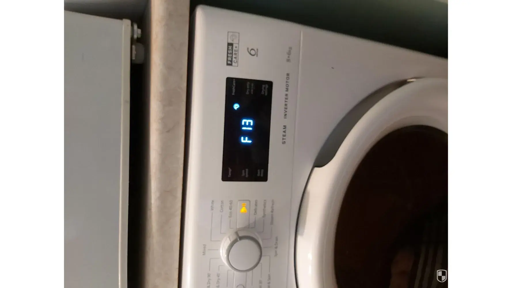 It is coming up with a F13 fault on my washer/dryer, it only happens when I am drying clothes, I have to unplug the machine before it will allow me to open the door, I have noticed the clothes are slightly wet it parts of them. It looks like the machine is letting water into the drum. I am able to wash the clothes fine it is only the dryer that is causing the problem.