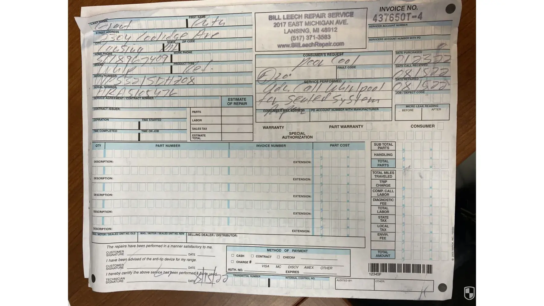 Aug 15th, 2022 I used the WP online to schedule a repair person in my area to come service it. He determined it was a sealed system failure and he could not repair nor did he know of anyone that could. He instructed me to call WP and report, which I did that same day. The person I spoke to wrote down all the information and would search for out of area repair person but put this as a "high priority". The refrigerator also leaked water on my new wooden flooring.