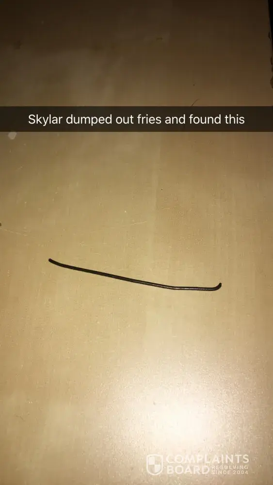 My name is Amy C, I'm writing to you about a situation that nearly got me shaken up. My 2 year old daughter and I went to White Castle in Midlothian IL and was in the drive through. Ordered our food had a coupon for buy 5 burgers fry 5 free and a small order of fries. Got it fresh and everything was all in the bag We came home we sat down and ate i gave Her the last of the fries she had asked to dump the rest oh the box onto her paper plate i said Yes and went to the bathroom i heard Her call me and i came out And she said what's this mommy? I dropped to my knees and said what is this where did u get this?!? She said it was on my plate i had To check her mouth and asked questions to make sure she didn't swallow or chew on anything weird she said no and opened her mouth. I had to turn on a brighter light in the house to see what this was it was a little bigger then a Bobby pin it's not metal or glass it could be something broken from there grill i don't know but i did Take a pic and saving it in a zip lock baggie to bring to them tomrrow to show the boss i spoke To a manager she told me to please come in and she apologized. This has never happened and I'm never the one to complain about the slightest little thing and I wasn't going to make it into a big deal but I knew in my Heart that this wasn't right. This needed to be reported This was my 2 year old what if she didn't know better and just put it in her mouth or any other child that was in this situation and didn't know better. I'm in the position where I'm shaken up and thanking god that my 2 year old was SMART AND CAME TO ME. Please reach out to me ASAP my number is [protected]