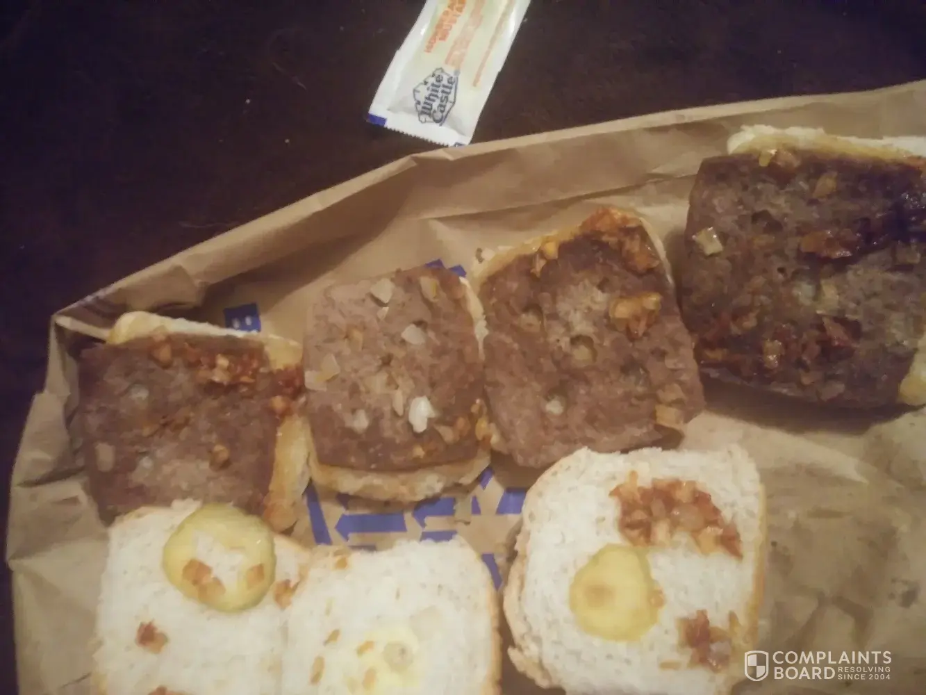 My son started crying and refused to eat the burgers, so I gave him my food from McDonalds. The white castle burgers were so dry I couldn't choke them down. I took a picture as none of us would eat them, not even the dog would touch them and that says a lot! So no dinner for me after working a 14 hr day. I had to give my son my food so he could eat, but I couldn't.