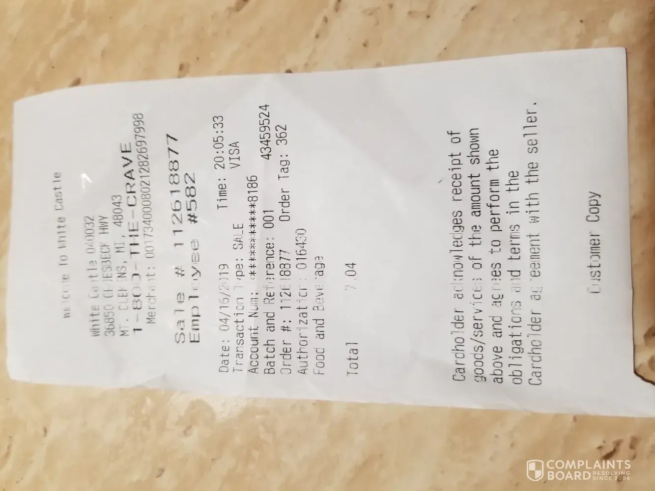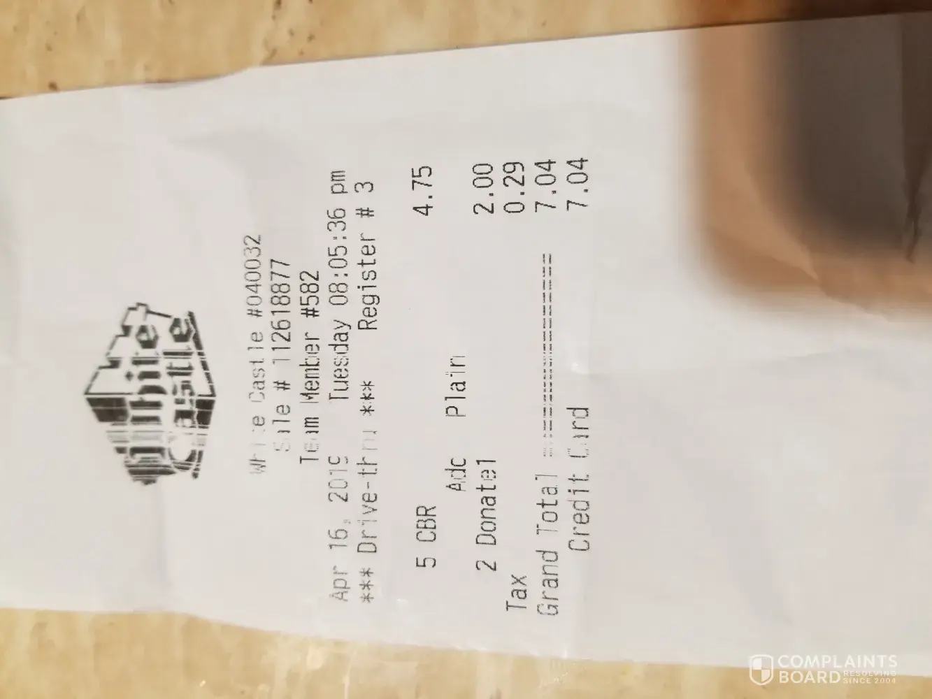 This is a complaint against white castle. Not sure where that 1965 came from...?