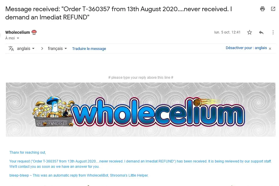 The only problem I had with Wholecilium was not their fault...it was Coinbase failing to transfer funds and they still have my funds..no customer service at all! I then used WorldRemit and they were very prompt and sent funds immediately, but different method. WC was very prompt, courteous, and wonderful about answering my e-mails, and I had many questions. Keep in mind that (I've found out since this was my first venture) that ordering from other countries (I'm in USA) can be awful and extremely slow. It goes through several carriers and then customs, as well, (which I understand they randomly seize packages) and imagine the backlog of packages backed up. For some reason, it also takes them a while to 'process' payments even when the are confirmed...have no idea why. USPS has thousands of complaints about losing packages and orders never received or found! WC made me aware that the receipt time could vary greatly once it left their facility. Actually it was about a week.