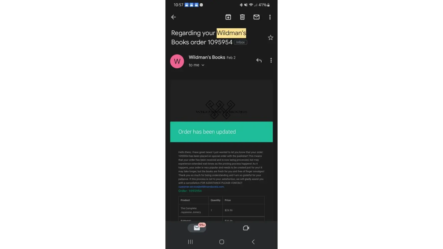 I ordered a book from Wildman's Books on February 26, 2022, but never received it.