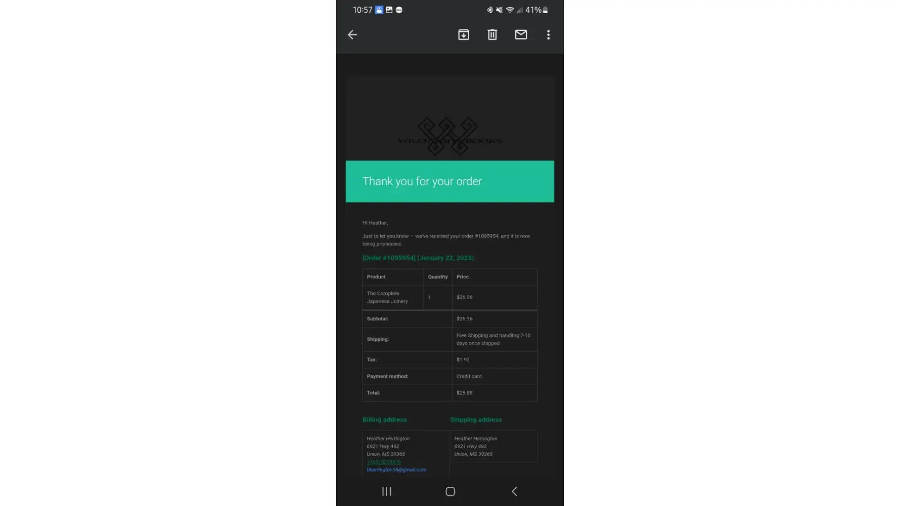 I placed an order through my debit card for two books on 3/6/22 online on the Wildman's Books website