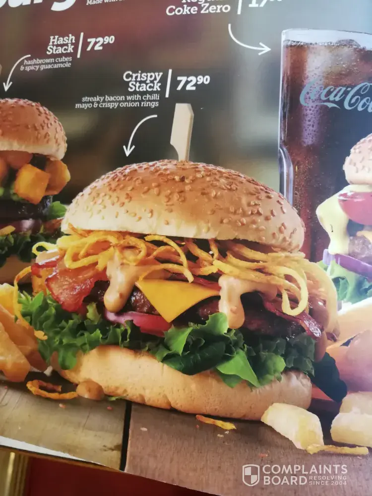 i orderd a Crispy Stack burger for R72. that on its own was a bit much for me but anyway it looked real good on the menu so ordered it anyway.