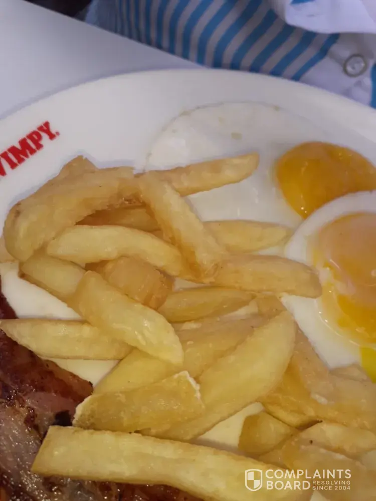 Complaint I have fotos to support what I am saying! Oaktree wimpy terrible service and food not up to standard looking second hand tasting bitter the fries eggs also looked second hand. Waited almost 40minutes for food arriving not very warm and looking horrible unappetising as well as poor service knowing good quality food take time but when arriving there were merely 2 couples at other tables