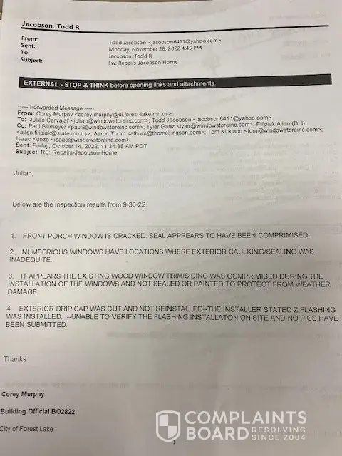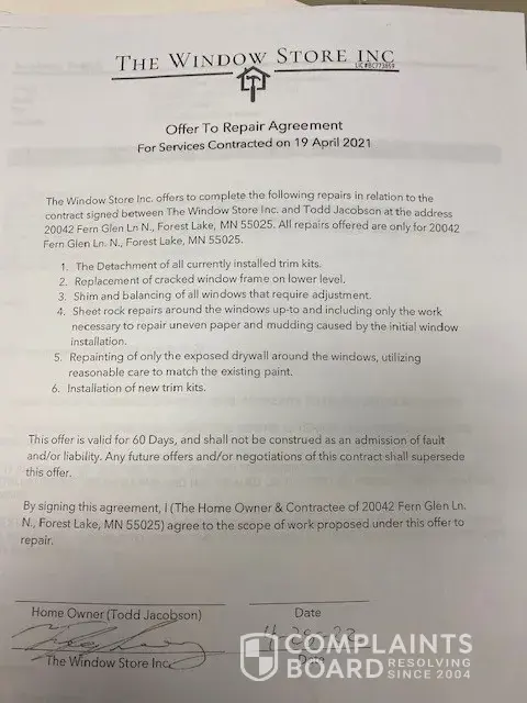 Read full complaintThe Window Store Inc St. Anthony Mn - Window installation in my home.