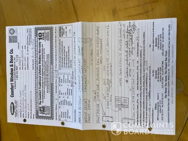 Read full complaintComfort Windows & Doors Syracuse, NY - Window warranty