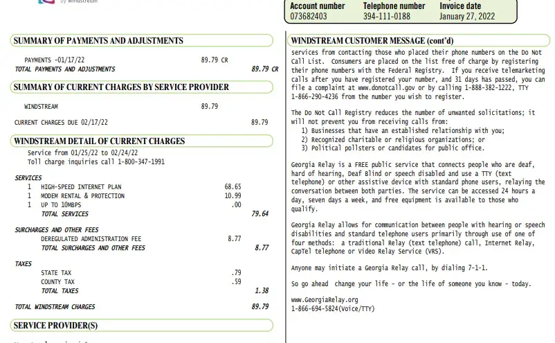 Overcharging. Windstream website says, for my address, $35 a month intro $55 after 12 months, modem $6.99 after 3 months. My last 2+ years of bills have me paying $68.65 a month for service and $10.99 for the modem. I asked about this several times and got several different answers (all lies), but it was the only capless internet option for me so I stayed. I have Starlink now and it's amazing. Cancelling with Windstream was the most difficult thing I've had to do - they offered to take my service down to $20 a month to stay, and then fought me tooth and nail to not prorate my service since I missed cancelling by 1 day (they wouldn't answer their phones for 3 days, but that's my fault somehow).
