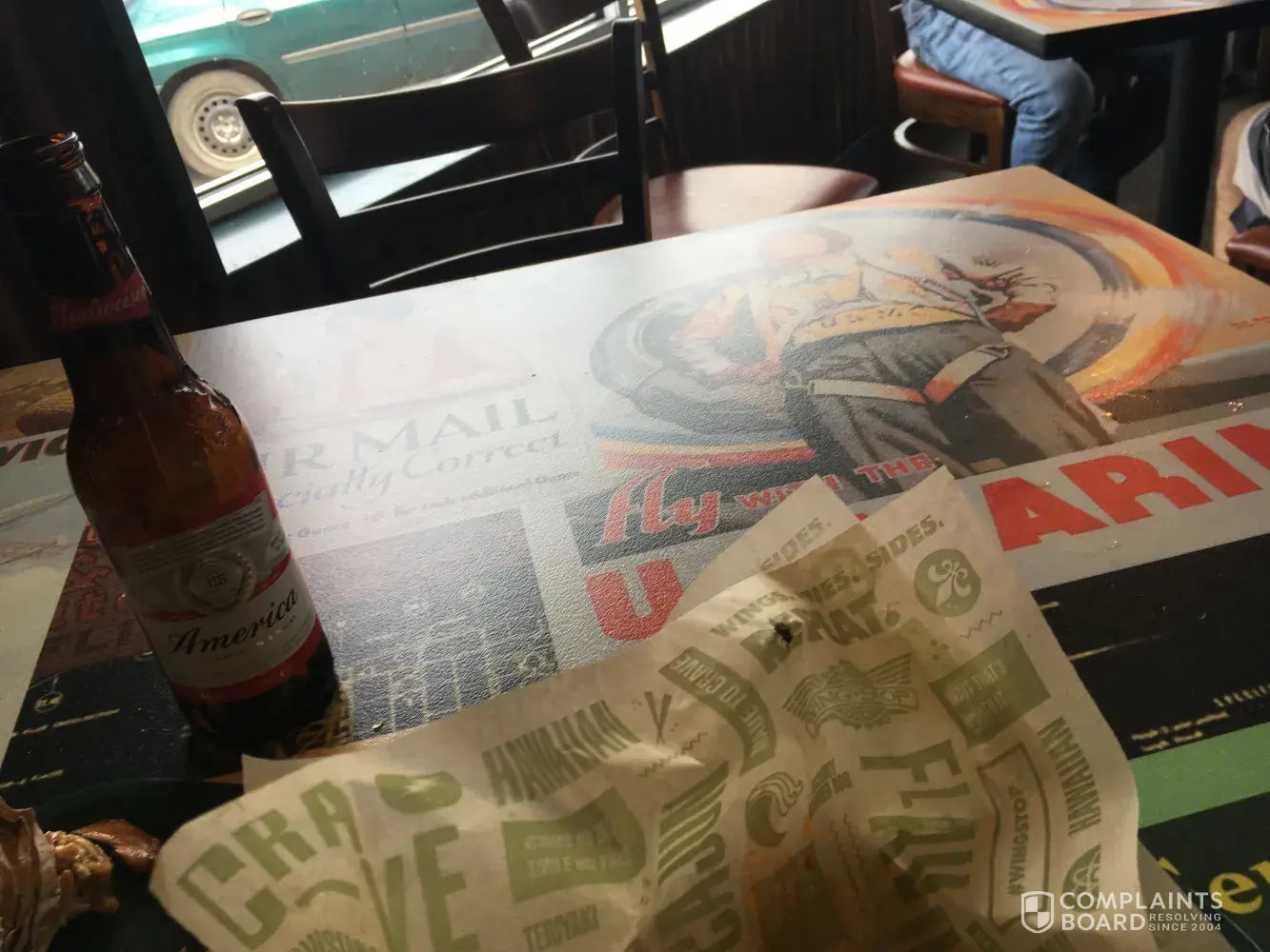 I was eating at wing stop, in Corsicana Texas... I had to wave my hand around, to keep the flies off my food .wings tasted bad.drank a Budweiser, it was warm.the table was nasty.