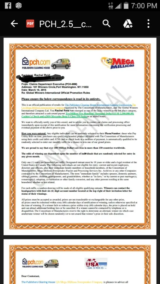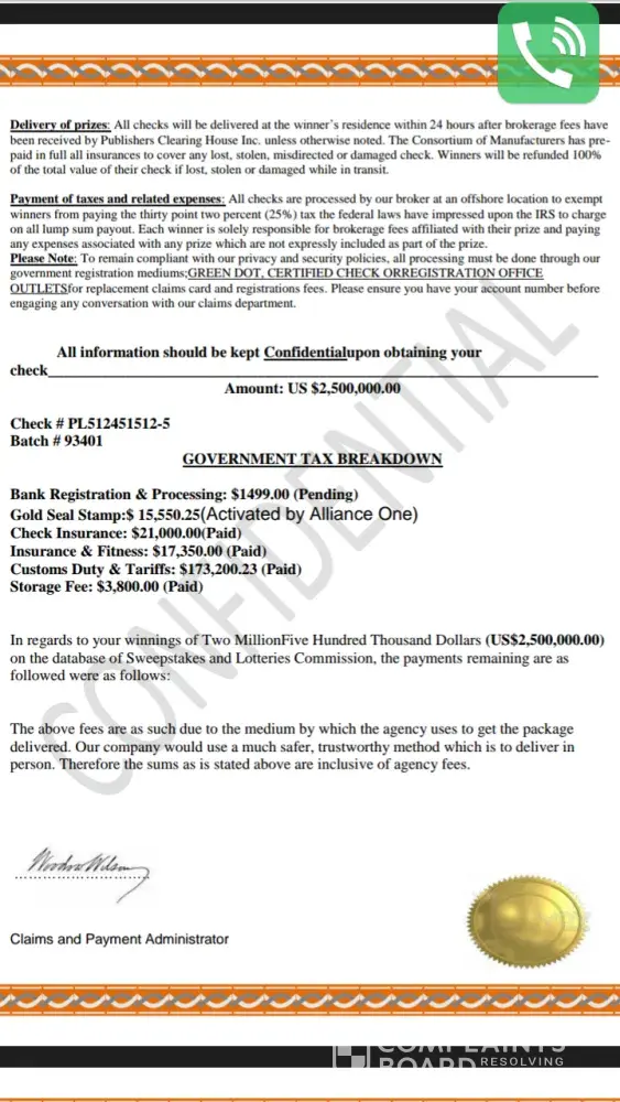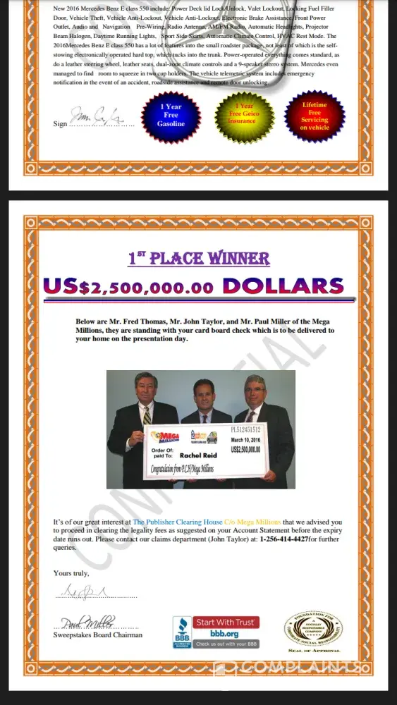 well this has just happened to me and the same address was told to me, and this person was joe anderson he claimed he was mexican which was a bold lie i could tell he was eastern and reputedely kept calling back as i told him i was not interested nor was i mailing out a 1.500 dollar check by wetern union but my offer was a 2nd place winning of 800.000 dollars wow ! this happened nov 5th 09 and pretty much as it was told to you it was told to me this check must be sent out now so i can recieve it at 5:oo pm i finally got fed up and told joe anderson to ### off and that i was recording him as we speak and now im calling the feds on him ... thier were no more phone calls... DONT FALL FOR IT PEOPLE