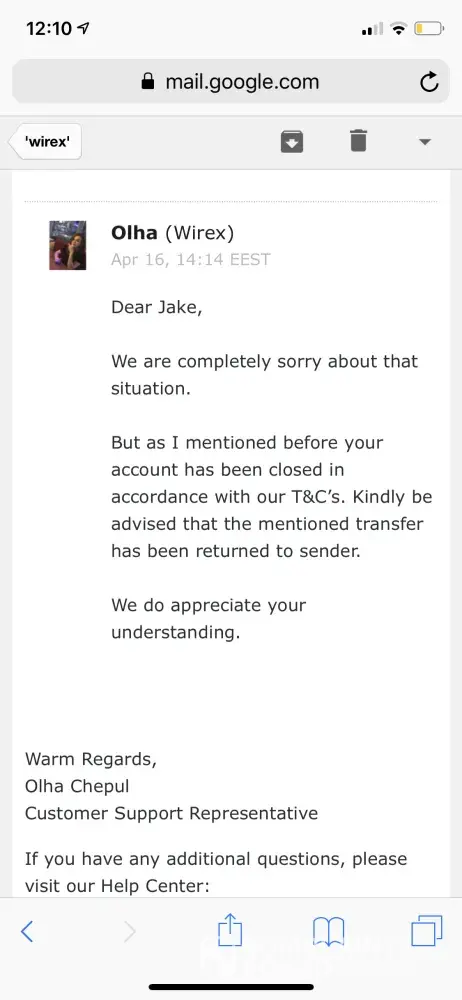 The Wirex Review Team forced me to close my Wirex account and assured me that they would return all remaining funds to my bank account.