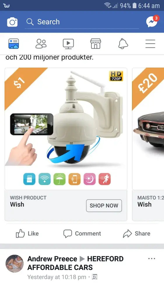 I have seen advertised on Facebook a 360 degree camera for $1 So have proceeded to click the link to buy it to only find out on there actual page its £57 I have images saved of the false advertisement and the actual item on there page disgusted that it's not the price they said a clear attempt of false advertisement I will be passing this to trading standards later today