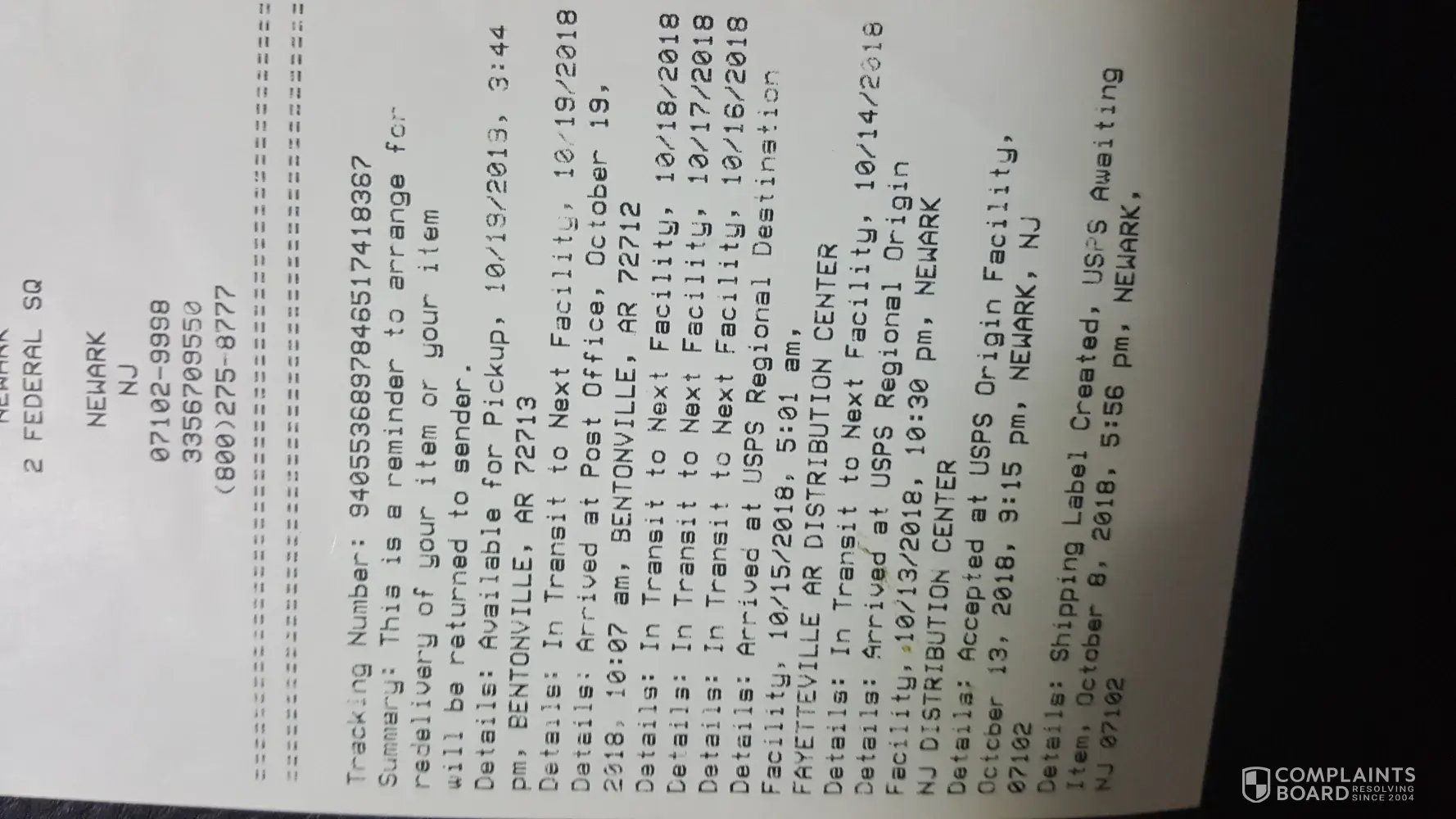 orders not received.