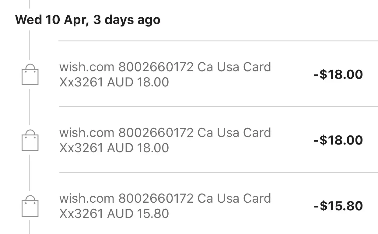 You'll see "PAYPAL *WISH" on your card statement.