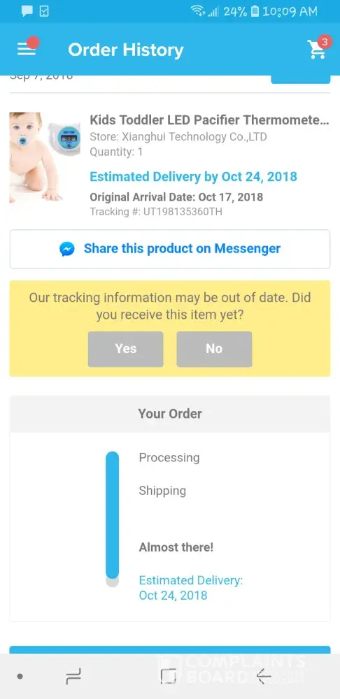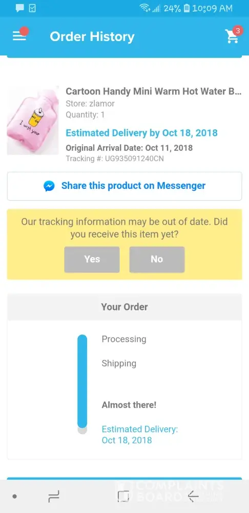 I bought also so many items from Wish. I also ordered few items and it said in the Order History that I will receive them on October 11 and until now I did not yet receive it.
