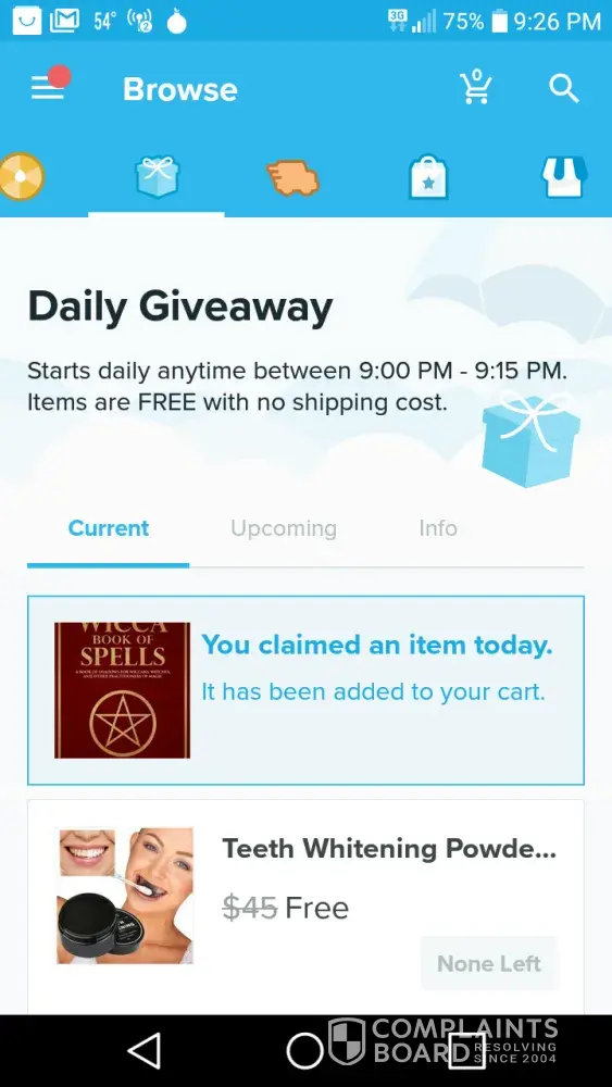 What I don't understand is why Wish.com put items on the giveaway page that they don't have the stock for! Tonight I went on there and supposedly claimed a book will when I selected it a message popes up saying that there wasn't enough stock available...BS! it said that I claimed it and it was supposed to be added to my cart...so it would not let me claim anything else...well I didn't claim [censored]...because supposedly I already claimed an item...this isn't the first time this has happened on Wish...no use in contacting or trying to contact customer support...they will just say first come first serve basis...yeah well they need to fix there glitches and stop posting stuff for free if no one can claim it!plus a few months ago I claimed an item and they refunded it...I did not ask for a refund and I tried to contact customer service several times wanting to know why they refunded it...and I never got a response...plus I am not getting the products that I purchased and they have flagged my account for excessive refunds...well I am just about done with Wish.com I cannot get the things I buy or the free stuff...so they have just lost a customer...I used to spend a lot of money on Wish! now I feel like I am getting f*cked! as you can see what I was supposed to have claimed it not in my cart or order history!
